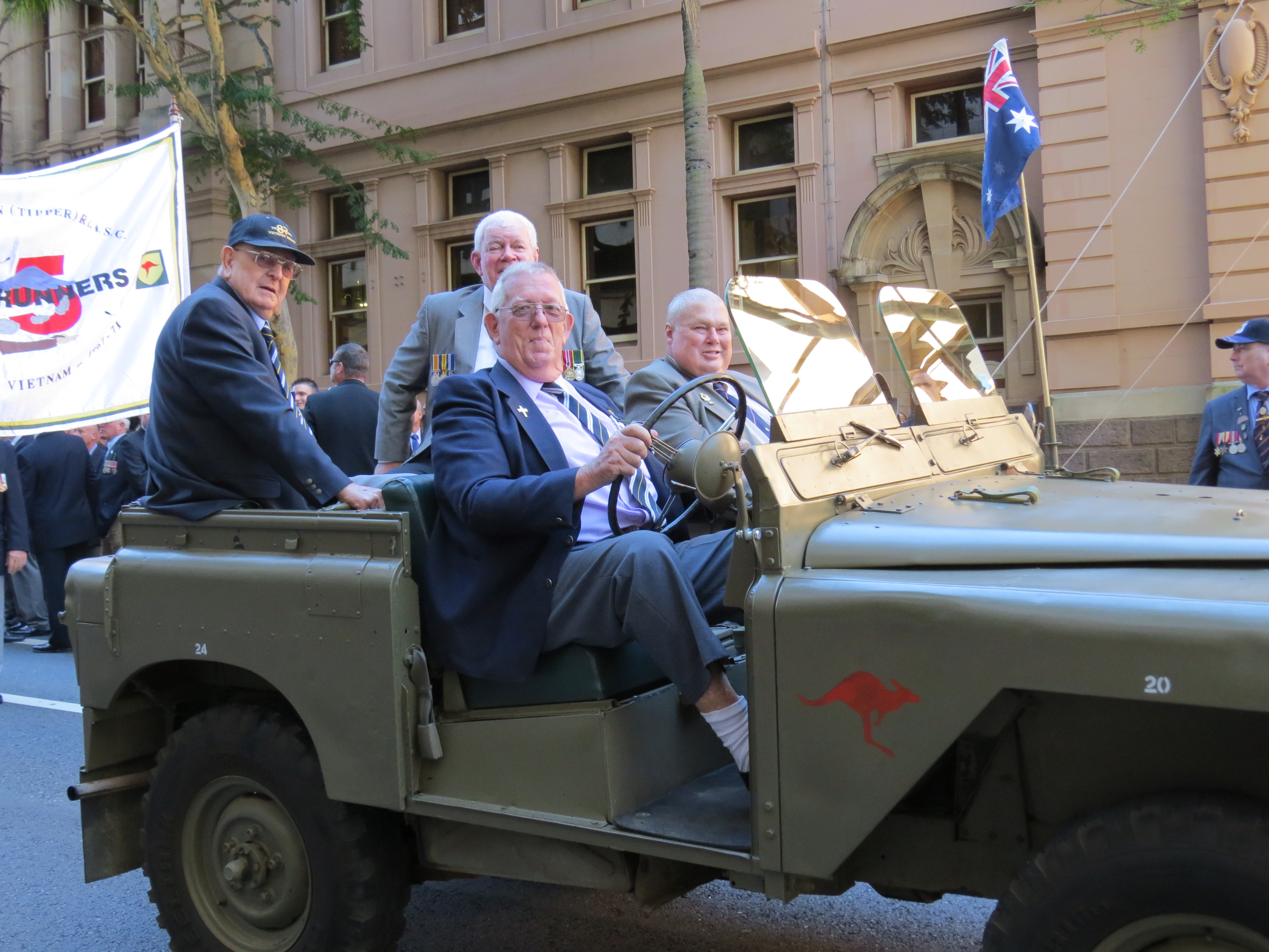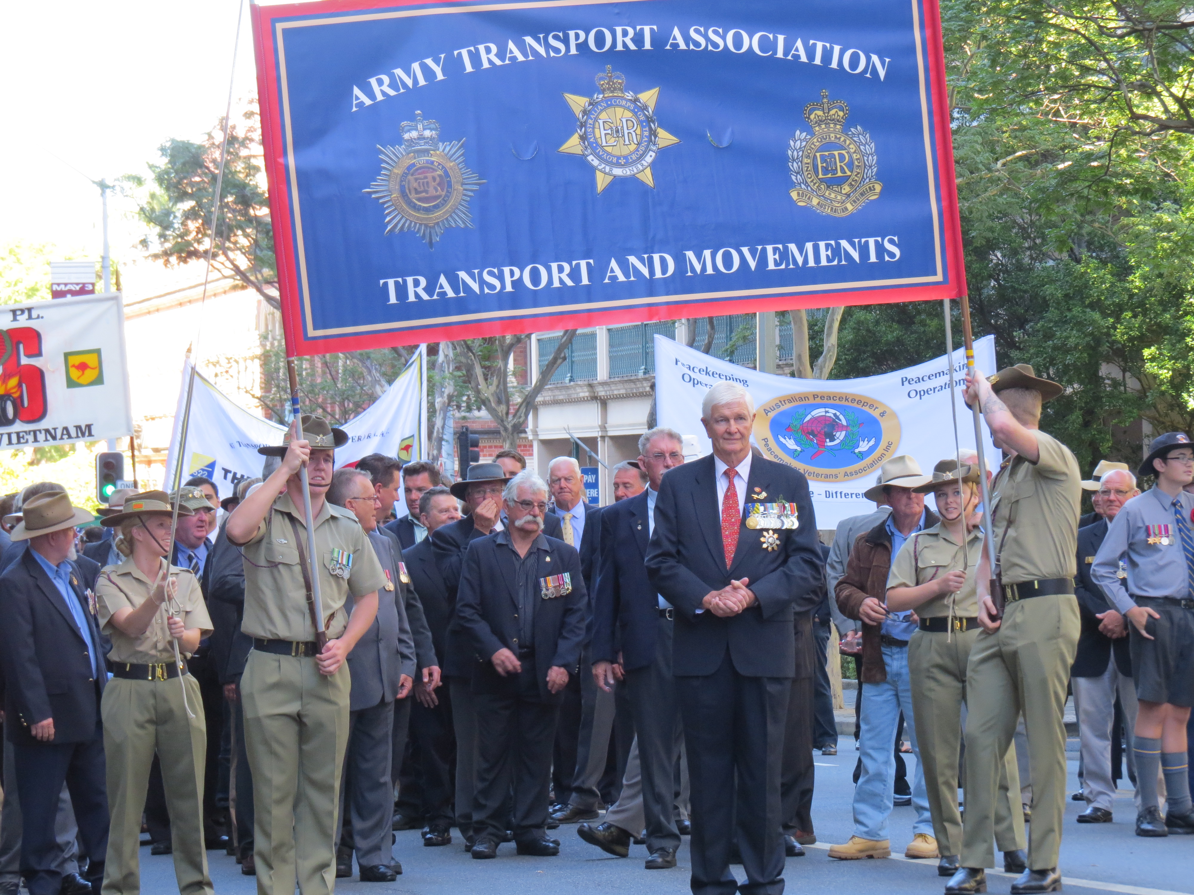 Maj Gen David Ferguson led our contingent and just to the left and behind the little female soldier is Donger (wearing a giggle hat).