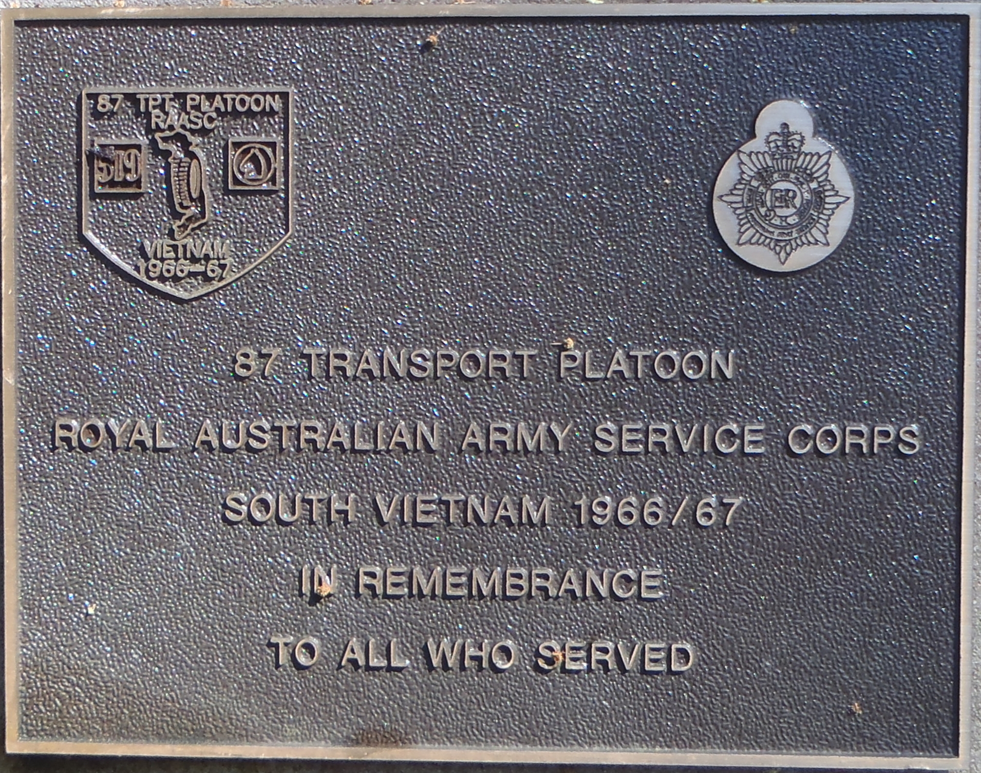 The second Plaque on hand is the one dedicated to 87 Tpt Platoon RAASC itself and this plaque was laid at the Vietnam Veteran’s Memorial Canungra on 5th December 2009.